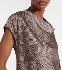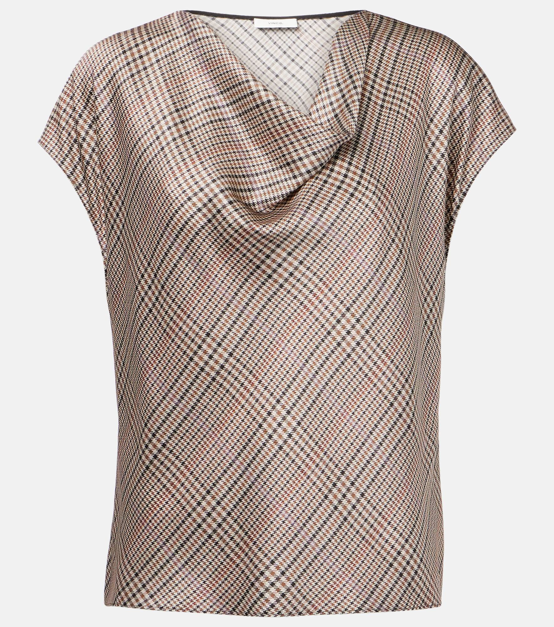 This houndstooth silk top features a softly draped neckline and a lightweight, fluid feel, offering a subtle statement with classic appeal. Look to Vince when building a timeless wardrobe of elevated yet understated styles. Product Details - Material: 100% silk - Care instructions: hand wash - Made in China - Designer color name: Multi Plaid - Item color: gray - Item number: P01058972 Size & Fit - True to size - Straight fit - Non-stretchy fabric - Falls to the hip - The model seen in the picture is 178cm-5'10" and wearing a size XS
