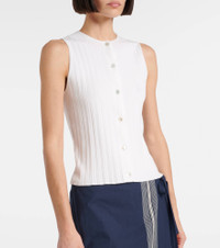 Replete with subtle ribbing of varying sizes, this pure cotton sleeveless top from Vince is a tactile treat. Subtly buttons trim the design down the front. Product Details - Material: 100% cotton - Care instructions: dry clean - Made in China - Designer color name: Off White - Item color: ivory - Slim fit - Length: regular (hip-length) - Hem: straight - Closure: buttoned front - Sleeves: short-sleeved - Collar: crewneck - Item number: P01058885 Size & Fit - True to size - Straight fit - Stretchy fabric - Falls to the hip - The model seen in the picture is 178cm-5'10" and wearing a size XS