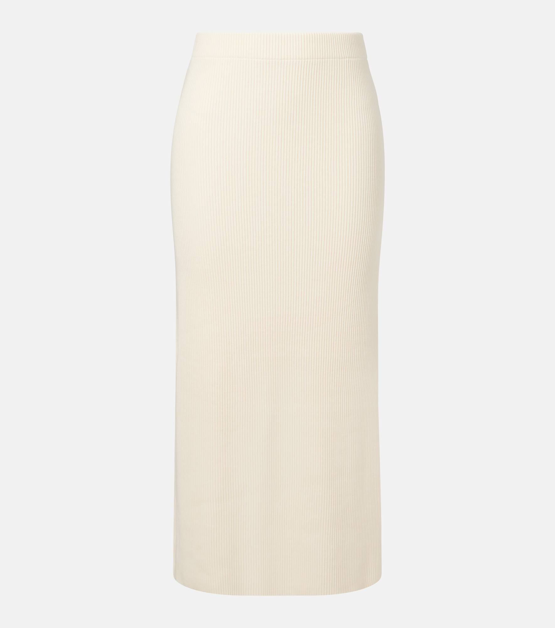 Crafted from a soft and stretchy cotton blend, this ribbed-knit midi skirt from Vince is designed for effortless elegance. The fitted silhouette is complete with an elasticated waistband for comfortable all-day wear. Product Details - Material: 46% cotton, 30% viscose, 22% polyester, 2% elastane - Care instructions: machine wash cold - Made in China - Designer color name: Oat Shell - Item color: white - Elasticated waistband - Item number: P01058904 Size & Fit - True to size - Fitted - Elasticated waist - Stretchy fabric - slit length 32cm-12.5" - The model seen in the picture is 178cm-5'10" and wearing a size XS