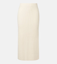 Ribbed-knit cotton-blend midi skirt
