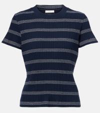 Ribbed-knit striped cotton-blend T-shirt