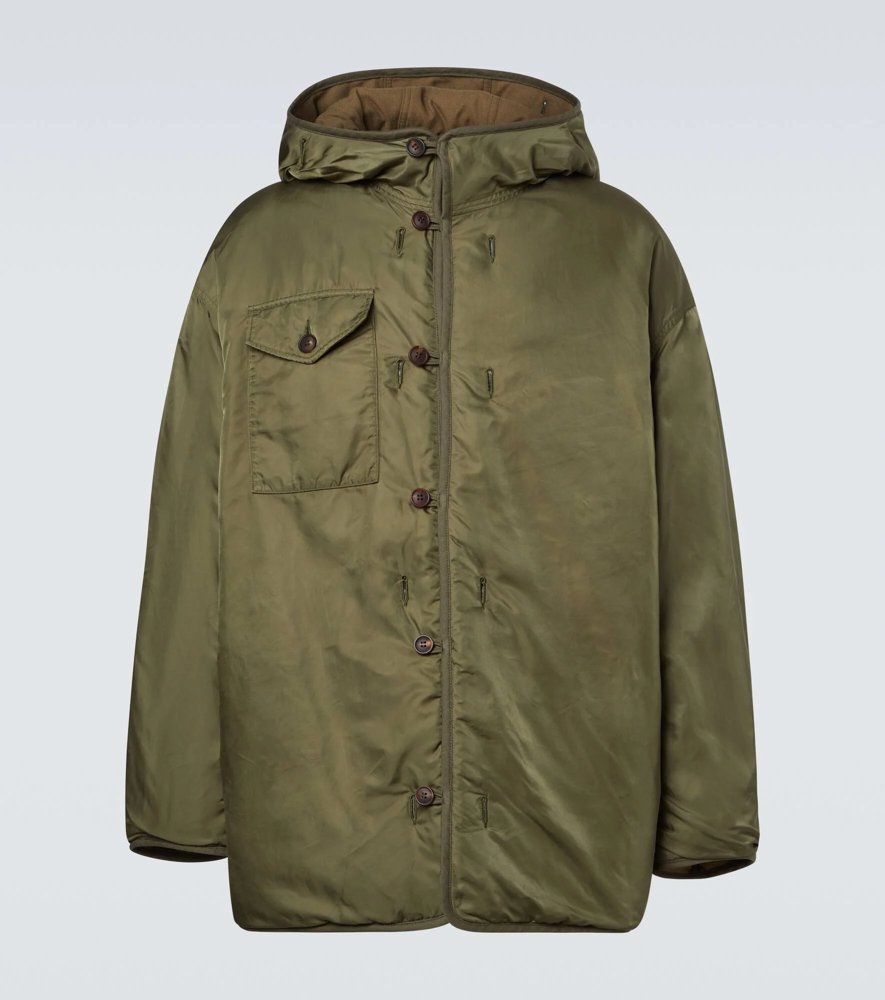 Based in Tokyo, Visvim masterfully blends traditional Japanese craft techniques with vintage-inspired apparel. The Greely Corps down-filled parka is a reversible design made from technical twill on one side and wool and linen on the other. Product Details - Material: 100% nylon - Care instructions: dry clean - Made in Japan - Designer color name: Olive - Item color: green - Lining: 56% wool, 44% linen - Details: 100% cotton - Details II: 100% cotton - Filling: 93% down, 7% feathers - Contains non-textile parts of animal origin - Hood - Cuff: buttoned - Pockets: side slit pockets, internal pockets, flap chest pocket - Closure: buttoned front - Reversible - Includes: dust bag - Item number: P01127572 Size & Fit - True to size - Dropped shoulders - Designed for a loose fit - Non-stretchy fabric - Falls below the hip - Height of model is %cm%cm-%inch%" and wears a size 4