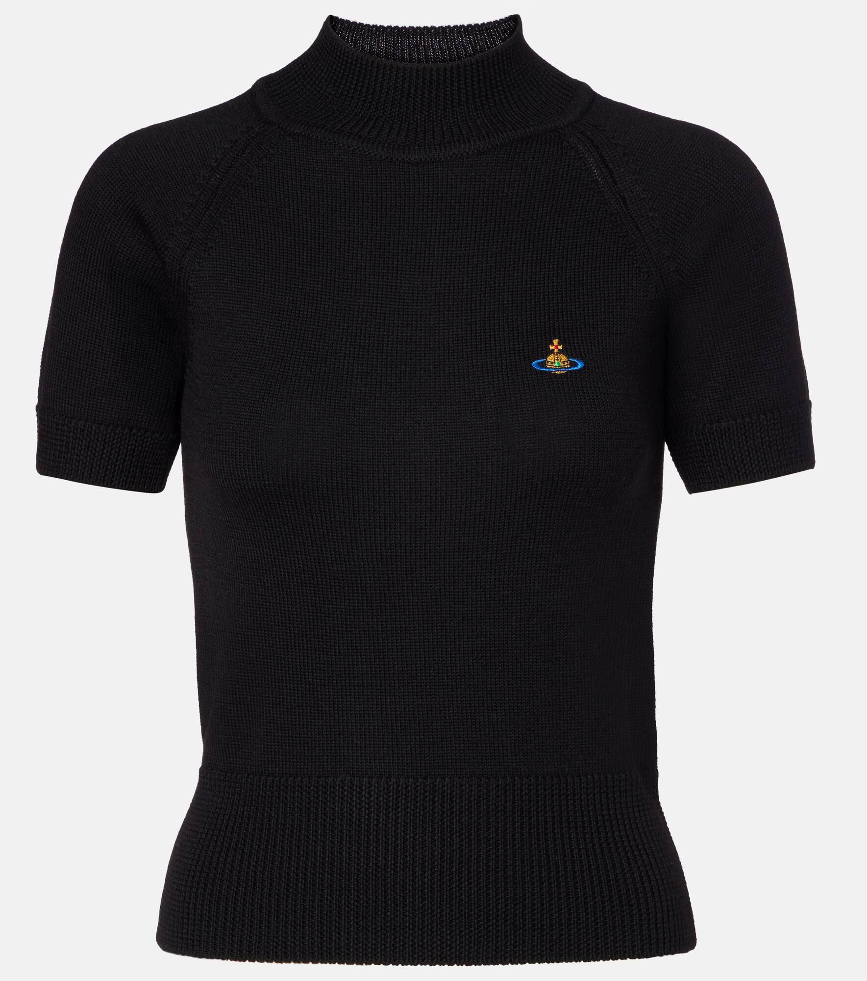 The Bea top from Vivienne Westwood is finely knitted from wool. The short-sleeve style features a mock-neck, ribbed trims and the brand's multicolored Orb motif subtly embroidered on the chest. Product Details - Material: 100% virgin wool - Care instructions: dry clean - Made in Italy - Designer color name: Black - Item color: black - Item number: P01052300 Size & Fit - True to size - Fitted - Stretchy fabric - Slightly cropped - The model seen in the picture is 178cm-5'10" and wearing a size XS