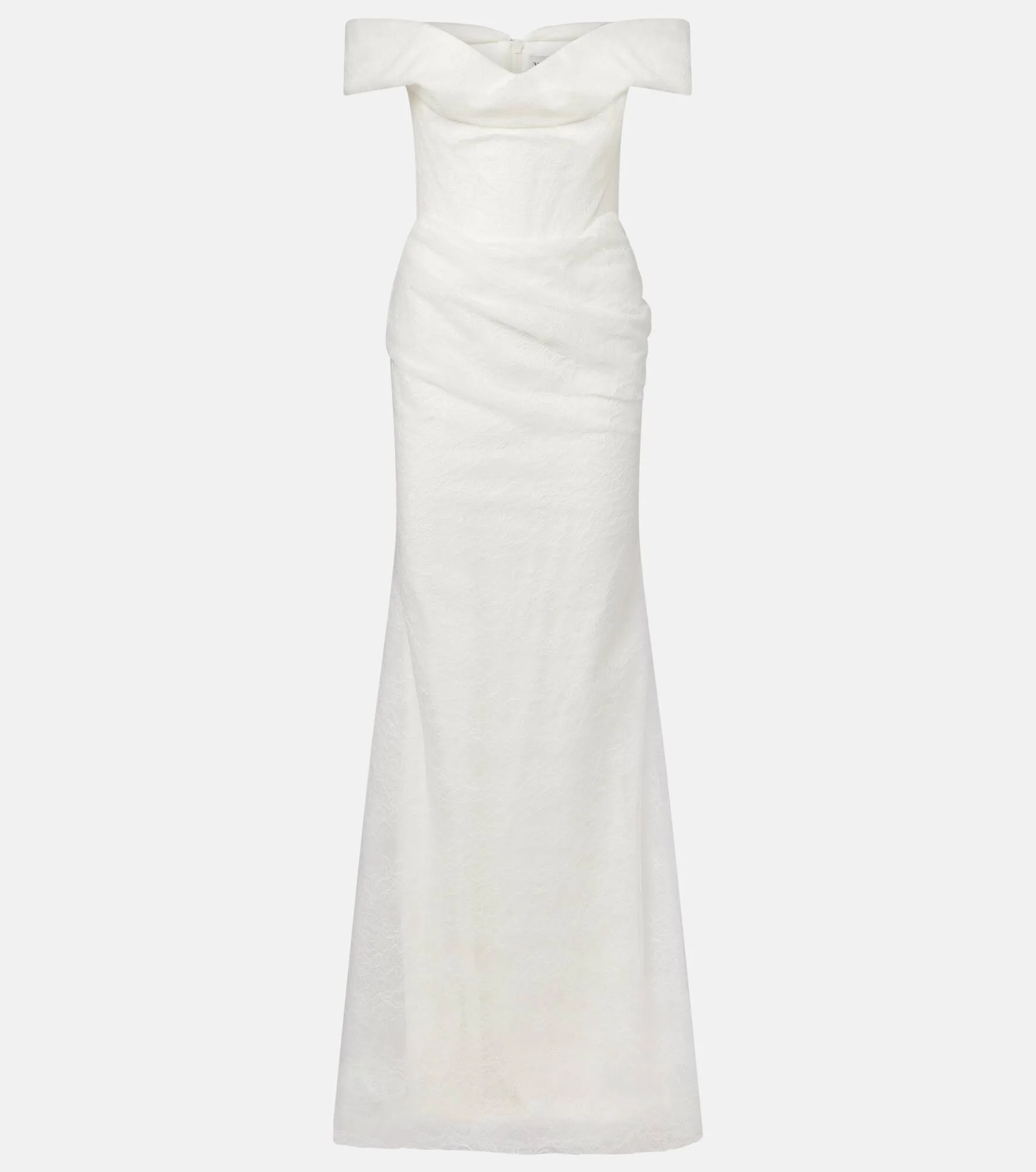 Make your big day even more memorable with the Nova Cora gown from Vivienne Westwood. Made from delicate floral lace, the design offers structure with its corseted bodice and showcases soft draping at the neckline and hips for graceful movement. Product Details - Material: 100% polyamide - Care instructions: dry clean - Made in the UK - Color: white - Designer color name: Ivory - Material II: 100% polyamide - Lining: 93% silk, 7% elastane - Closure: concealed zipped back - Built-in bustier - Includes: garment bag - Item number: P01104621 Size & Fit - True to size - Off-the-shoulder - Internal boned corset for support - Cinched waist - Non-stretchy fabric - The model seen in the picture is 178cm-5'10" and wearing a size UK 8