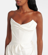 Product Details - Material: 73% acetate, 27% viscose - Care instructions: dry clean - Made in the UK - Designer color name: Pearl - Material II: 100% polyamide - Lining: 100% silk - Closure: concealed zipper - Item number: P00945426 Size & Fit - Fits small to size - we recommend trying one size larger - Strapless - Internal boned corset for support - Non-stretchy fabric - The model seen in the picture is 178cm-5'10" and wearing a size UK 10