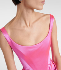 You'll be the star of the evening in the Camille gown from Vivienne Westwood. Crafted from satin in the season-favorite hot pink hue, it is artfully draped at just the right places. Product Details - Built-in bustier - Care instructions: dry clean - Closure: zipped back, hook fastening - Material: 57% acetate, 6% elastane, 37% polyamide - Designer color name: Pink - Made in the UK - Lining: partially lined, 100% viscose - Item number: P00763823 Size & Fit - True to size - Internal boned corset for support - Fitted bodice, loose skirt - Non-stretchy fabric - The model seen in the picture is 178cm-5'10" and wearing a size UK 8