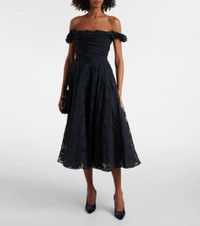 Product Details - Material: 70% cotton, 30% polyamide - Care instructions: dry clean - Made in Italy - Designer color name: Black/ Navy - Material II: 84% polyamide, 16% elastane - Material III: 100% polyamide - Closure: zipped back - Item number: P01014702 Size & Fit - True to size - Internal boned corset for support - Cinched waist - Non-stretchy fabric - The model seen in the picture is 178cm-5'10" and wearing a size IT 40