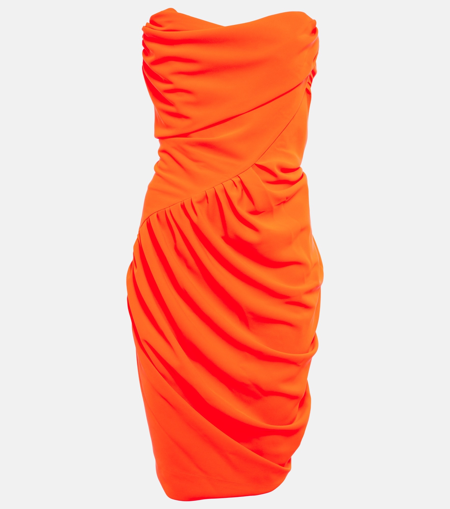 This structured minidress from Vivienne Westwood packs a sartorial punch. The corset-inspired design is made from crêpe, and features two-way draping, which creates additional visual interest. Product Details - Lining: 100% polyester - Closure: snap-buttoned fastenings, zipper fastening - Made in Italy - Care instructions: dry clean - Material: 100% polyester - Item number: P00750535 Size & Fit - True to size - Strapless - Internal boned corset for support - Cinched waist - Mid-weight material - The model seen in the picture is 178cm-5'10" and wearing a size IT 40
