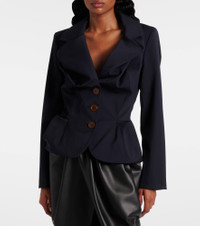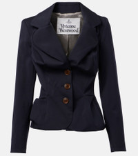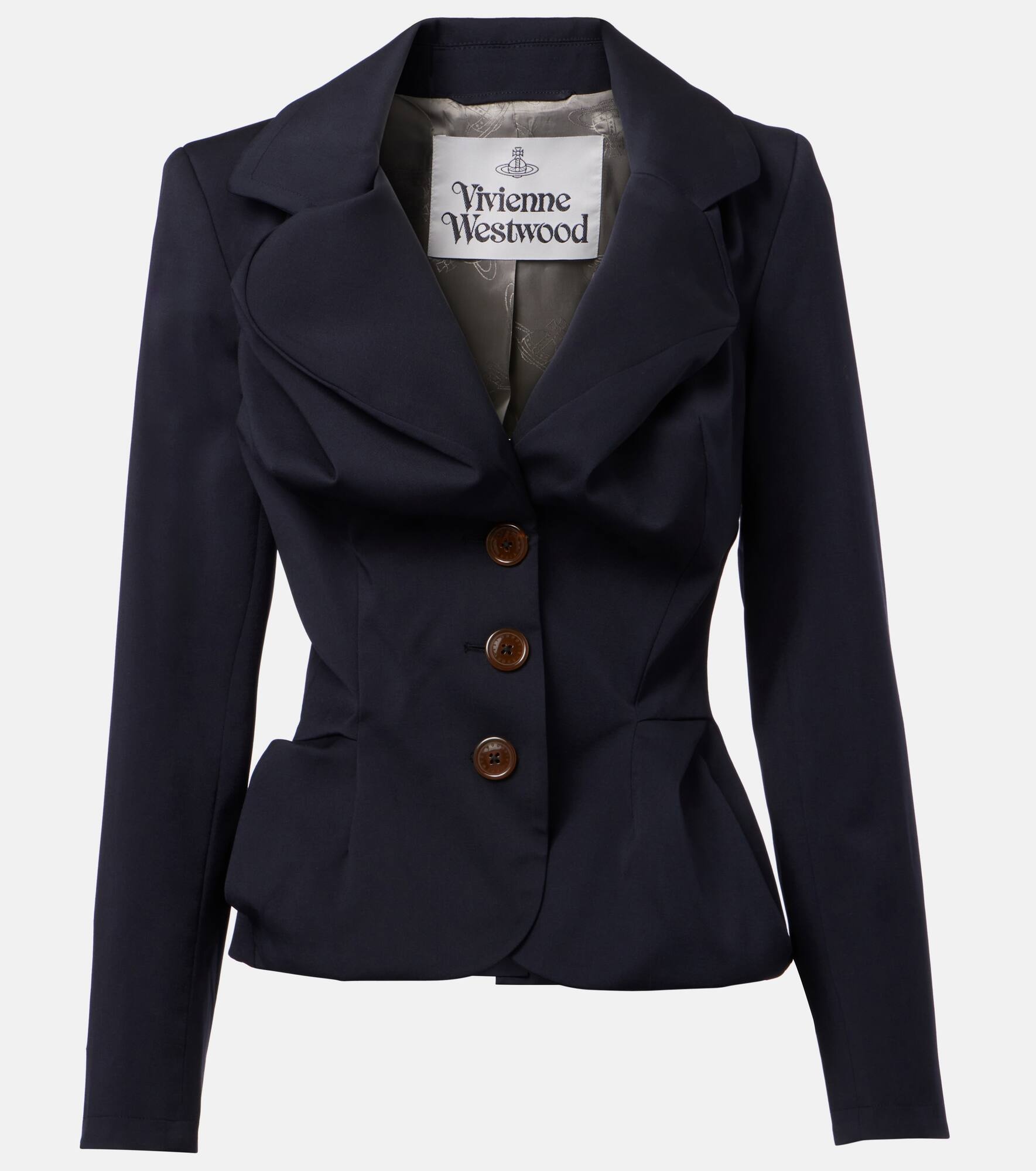 Vivienne Westwood’s designs continue to exemplify the disruptive energy of its late founder – fashion’s original punk pioneer. Italian-crafted from wool, this jacket is a fan favorite with its considered cinch and draping. Product Details - Material: 100% virgin wool - Care instructions: dry clean - Made in Italy - Designer color name: AW25-Navy - Item color: blue - Lining: 100% viscose - Lining II: 100% viscose - Pocket lining: 100% cotton - Blazer - Cloverleaf lapel - Closure: single-breasted (three buttons) - Vent: single - Pockets: side slit pockets - Item number: P01065075 Size & Fit - True to size - Shoulder pad inserts - Cinched waist - Non-stretchy fabric - Falls to the hip - The model seen in the picture is 178cm-5'10" and wearing a size IT 40