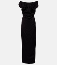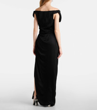 Vivienne Westwood’s designs continue to exemplify the disruptive energy of its late founder – fashion’s original punk pioneer. The Ginnie maxi dress is made from jersey and features an asymmetric hemline and cinched waistline. Product Details - Material: 100% viscose - Care instructions: dry clean - Made in Italy - Designer color name: AW-BLACK - Item color: black - Lining: 50% viscose, 50% acetate - Item number: P01065089 Size & Fit - True to size - Off-the-shoulder - Cinched waist - Non-stretchy fabric - The model seen in the picture is 178cm-5'10" and wearing a size IT 40