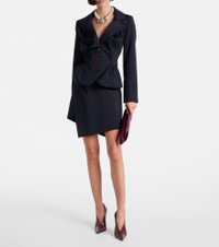 The Infinity miniskirt from Vivienne Westwood balances edge and elegance with ease. Spun from pure virgin wool, this style gracefully wraps around the hips into a structured A-line silhouette, finished with an asymmetric hem. Product Details - Material: 100% virgin wool - Care instructions: dry clean - Made in Italy - Designer color name: Navy - Item color: blue - Lining: 100% viscose - Trim: 100% viscose - Closure: zip and button fastening - Hem: uneven - Item number: P01065077 Size & Fit - True to size - Non-stretchy fabric - The model seen in the picture is 178cm-5'10" and wearing a size IT 40