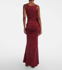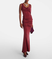 Vivienne Westwood’s designs continue to exemplify the disruptive energy of its late founder – fashion’s original punk pioneer. The Liz maxi dress features a cowl neckline with artful drapery across the bodice. Product Details - Material: 96% cupro, 4% elastane - Care instructions: dry clean - Made in Italy - Designer color name: Brick - Item color: red - Lining: 100% viscose - Collar: cowl neck - Hem: uneven - Item number: P01052257 Size & Fit - Fits small to size - we recommend trying one size larger - Fitted - Slightly stretchy fabric - The model seen in the picture is 178cm-5'10" and wearing a size S