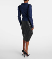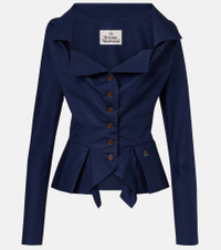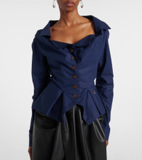 The Monday shirt from Vivienne Westwood is defined by a striking silhouette, featuring a fitted bodice that flares at the waist. Made from crisp cotton, the design has sculptural folds around the neckline and voluminous shoulders. Product Details - Material: 100% cotton - Care instructions: machine wash at 30 degrees - Made in Italy - Designer color name: AW25-Navy - Item color: blue - Item number: P01065071 Size & Fit - True to size - Cinched waist - Non-stretchy fabric - Falls to the hip - The model seen in the picture is 178cm-5'10" and wearing a size IT 40