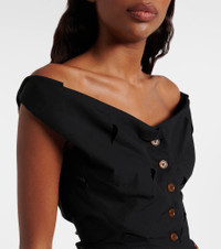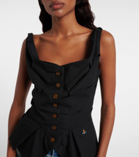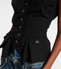 The Monday vest from Vivienne Westwood revisits an archival silhouette through a modern lens. Made from a light fabric, the style features a peplum hem, buttons along the front and the house's Orb embroidery. Product Details - Material: 65% polyester, 35% cotton - Care instructions: dry clean - Made in Italy - Designer color name: Black - Item color: black - Closure: buttoned front - Item number: P01052284 Size & Fit - True to size - Cinched waist - Non-stretchy fabric - Falls to the hip - The model seen in the picture is 178cm-5'10" and wearing a size IT 40
