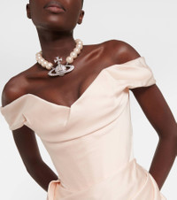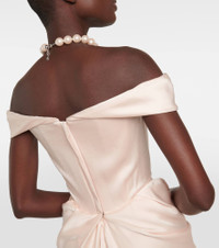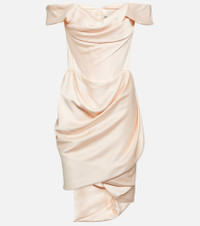 Dress to impress in the Nova Cora minidress from Vivienne Westwood. Made from luxurious, lustrous crêpe satin, it’s shaped with an artful, sculptural drape, a romantic, off-shoulder neckline, and fitted bodice. Product Details - Made in the UK - Material: 27% viscose, 73% acetate - Care instructions: dry clean - Designer color name: Stardust Blush - Item number: P00804065 Size & Fit - True to size - Off-the-shoulder - Internal boned corset for support - Cinched waist - Mid-weight material - The model seen in the picture is 178cm-5'10" and wearing a size UK 8