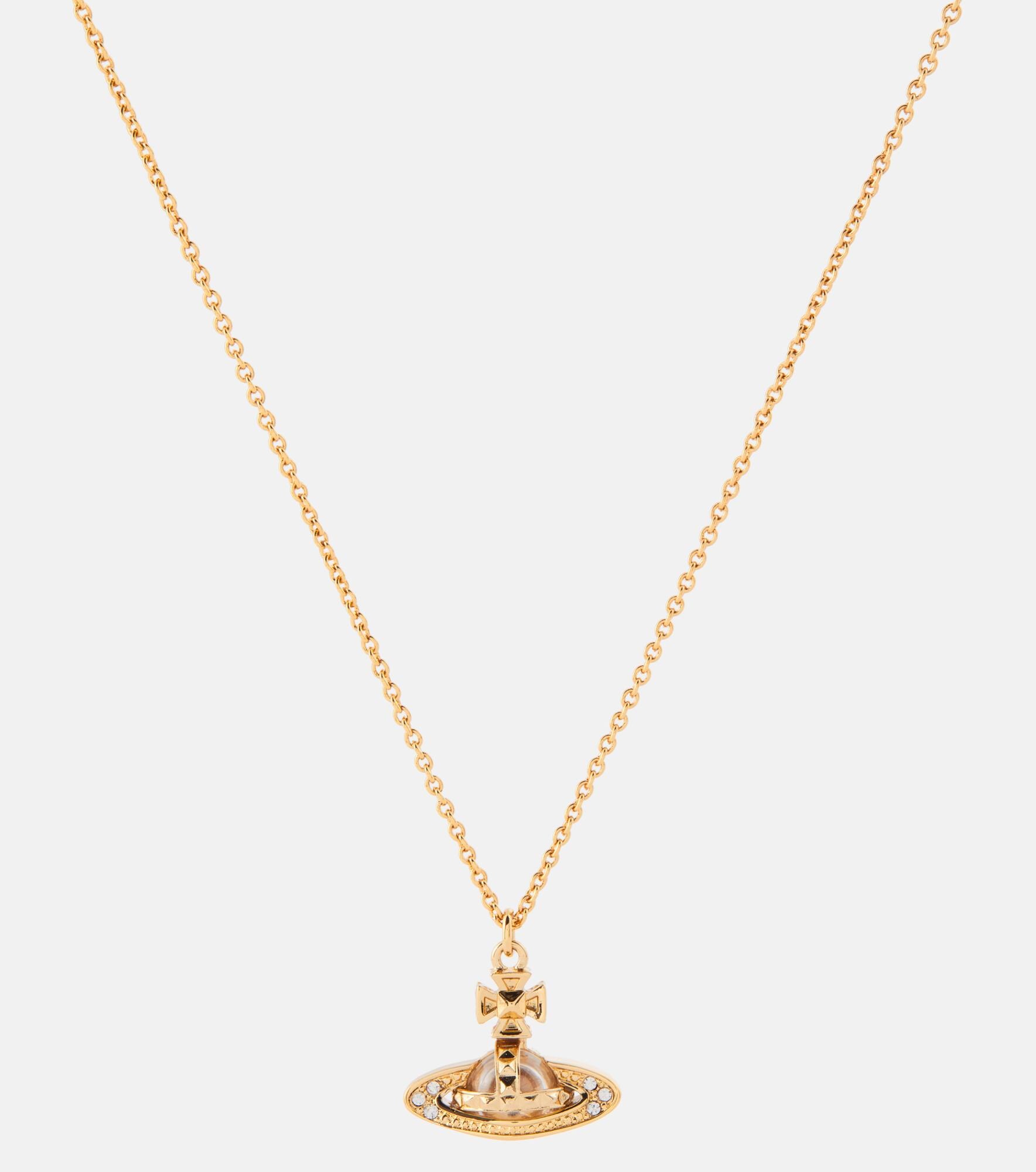 The Pina necklace from Vivienne Westwood adds an instant, enviable dose of glamour to your every ensemble. Made from gold-toned brass, it features an iconic Orb pendant with a sparkling crystal. Product Details - Pendant: brass, glass - Closure: lobster-clasp fastening - Material: brass - Made in Thailand - Designer color name: Gold Crystal - Item number: P00814456 Size & Fit - Adjustable length - Width 0,2cm-0" - Pendant length 1,5cm-0.5" - Pendant width 1,8cm-0.5" - Min. length 40cm-15.5" - Max. length 44cm-17.5"