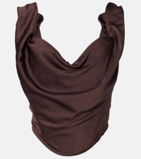 A brand staple and symbol of empowerment, Vivienne Westwood's modern take on the corset exhibits a penchant for historicism and subversion. The Sunday top is made in Italy and features a classic basque waistline and artful drapery. Product Details - Material: 100% polyester - Care instructions: dry clean - Made in Italy - Designer color name: Chocolate Brown - Item color: brown - Material II: 84% polyamide, 16% elastane - Closure: zipped back - Boning - Item number: P01052277 Size & Fit - True to size - Off-the-shoulder - Internal boned corset for support - Cinched waist - Non-stretchy fabric - Cropped - The model seen in the picture is 178cm-5'10" and wearing a size IT 40