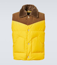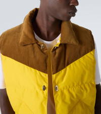 Wales Bonner channels its unique, irreverent style with meticulous cuts, creating what can best be described as tailored casualwear. The Brixton puffer gilet features a corduroy trim, a detachable plush collar, buttoned fastenings, and slant pockets. Product Details - Material: 59% polyamide, 41% polyester - Care instructions: dry clean - Made in Portugal - Designer color name: Yellow / Brown - Item color: yellow, brown - Material II: 100% cotton - Trim: 100% shearling - Lining: 59% polyamide, 41% polyester - Filling: 100% polyester - Contains non-textile parts of animal origin - Hardware color: silver - Detachable collar - Pockets: slant pockets - Closure: toggle fastenings - Item number: P01068398 Size & Fit - True to size - Straight fit - Non-stretchy fabric - Slightly cropped - The model in the picture is 185cm-6'1" and wearing a size IT 50