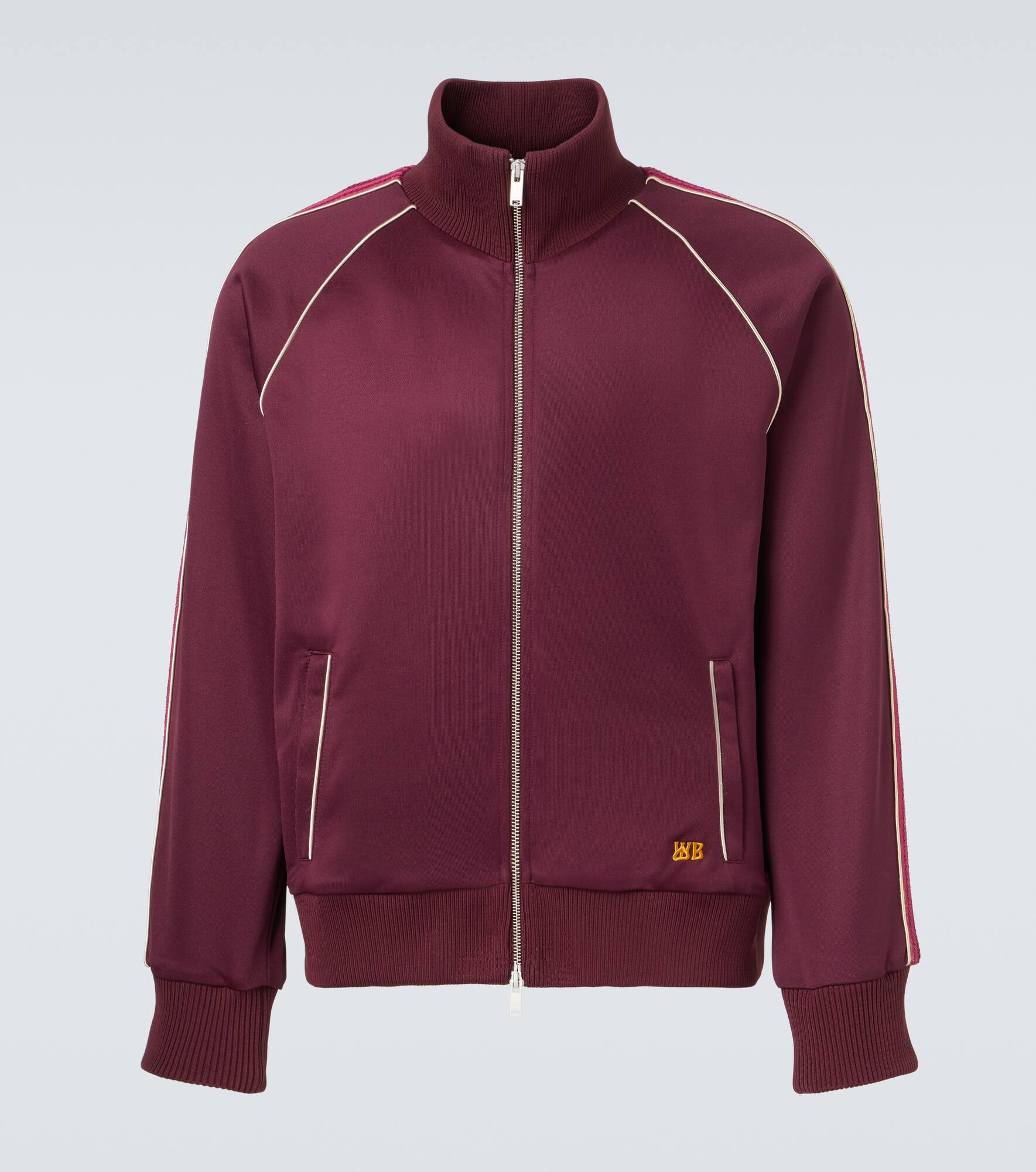 Wales Bonner channels its unique, irreverent style with meticulous cuts and unexpected motifs, creating what can be best described as tailored casualwear. The Essence jersey track jacket features a zipped front and side slit pockets. Product Details - Material: 55% polyester, 45% cotton - Care instructions: hand wash - Made in Portugal - Designer color name: Burgundy - Item color: burgundy - Lining: 100% polyester - Cuff: ribbed - Pockets: side slit pockets - Closure: zipped front - Hem: ribbed - Item number: P01068409 Size & Fit - True to size - Designed for a loose fit - Elasticated hem - Non-stretchy fabric - Falls to the hip - Height of model is 189cm-74.5" and wears a size L