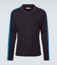 This sweater from Wales Bonner is made from a soft, ribbed-knit fabric with a smart polo collar. The style is accented with stripe detailing along the arms and subtle logo embroidery. Product Details - Material: 64% lyocell, 31.5% cotton (organic), 4.5% elastane - Care instructions: hand wash - Made in Portugal - Designer color name: Navy - Item color: blue - Material II: 95% cotton, 5% elastane - Item number: P01068408 Size & Fit - True to size - Slim fit - Stretchy fabric - Falls to the hip - Height of model is 189cm-74.5" and wears a size L