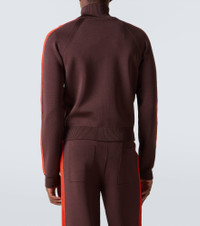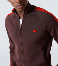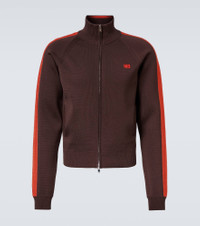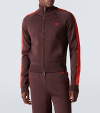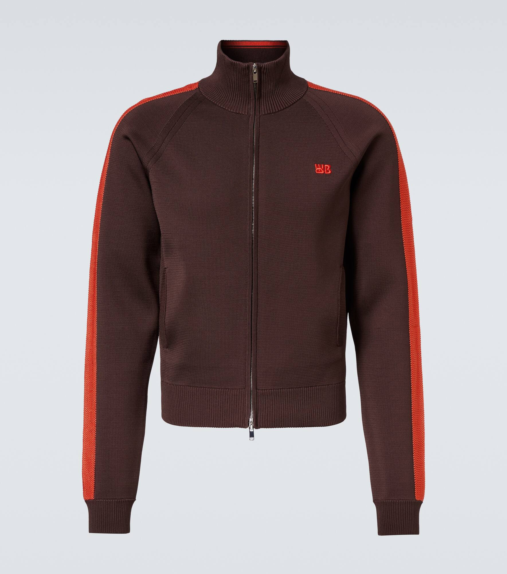 Wales Bonner channels its unique, irreverent style with meticulous cuts and unexpected motifs, creating what can be best described as tailored casualwear. The Tide track jacket features the brand's logo embroidered at the chest and contrasting trims for classic appeal. Product Details - Material: 75% viscose, 23% polyester, 2% nylon - Care instructions: hand wash - Made in China - Designer color name: Brown - Item color: brown, orange - Collar: turtleneck - Closure: two-way zipped front - Cuff: ribbed - Hem: ribbed - Pockets: side slit pockets - Item number: P01068404