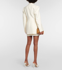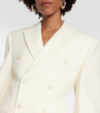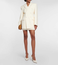 Fill your wardrobe with confidence-boosting pieces, such as Wardrobe.NYC's Contour blazer. Tailored from pure wool, this double-breasted style features a sophisticated silhouette with structured shoulders and a fitted waist. Product Details - Made in Slovakia - Pockets: flap - Material: 100% wool - Designer color name: Off White - Closure: double-breasted buttoned front - Care instructions: dry clean - Lining: 100% viscose - Item number: P00802232 Size & Fit - True to size - Oversized shoulders - Shoulder pad inserts - Cinched waist - Mid-weight material - Falls below the hip - The model seen in the picture is 178cm-5'10" and wearing a size XS