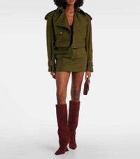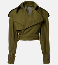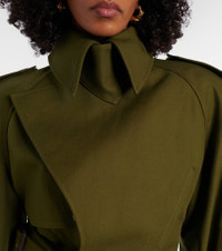 Wardrobe.NYC's elegant everyday essentials are produced in limited numbers with the needs of modern urban life in mind. This trench coat is cut from cotton twill into a cropped silhouette, featuring an attached belt that cinches the waist. Product Details - Material: 100% cotton - Care instructions: hand wash - Made in Slovakia - Designer color name: Military - Item color: green - Lining: 100% viscose - Epaulettes - Closure: button fastening - Attached belt - Pockets: welt pockets - Cuff: strap, buckle and loops - Item number: P01066042 Size & Fit - True to size - Oversized shoulders - Shoulder pad inserts - Cinched waist - Non-stretchy fabric - Cropped - The model seen in the picture is 178cm-5'10" and wearing a size XS
