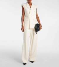 Turn to Wardrobe.NYC if you're looking for contemporary wardrobe essentials – such as these pants. Made from virgin wool, the pair features a low-rise waistline and pleated, wide legs. Product Details - Closure: zipper fly, button and hook fastenings - Made in Slovakia - Belt loops - Designer color name: Off White - Material: 100% virgin wool - Pockets: side slit pockets - Care instructions: dry clean - Lining: 100% viscose - Item number: P00802234 Size & Fit - Fits large to size - we recommend trying one size smaller - Mid-weight material - Wide-leg - The model seen in the picture is 178cm-5'10" and wearing a size XXS