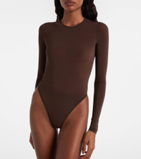 Turn to Wardrobe.NYC for modern separates, like this bodysuit. The long-sleeve style is made from delicate sheer fabric to a skintight silhouette and features a classic round neck. Product Details - Material: 86% viscose, 14% elastane - Care instructions: machine wash cold - Made in Portugal - Designer color name: Dark Brown - Item color: brown - Closure: snap-buttoned fastenings - Item number: P01113692 Size & Fit - True to size - Sheer - Fitted - Stretchy fabric - High-cut leg - The model seen in the picture is 178cm-5'10" and wearing a size XS