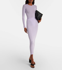 Wardrobe.NYC's elegant everyday essentials are produced in limited quantities with versatility, supreme quality, and modern urban life at their core. This bodysuit is a fitted piece made in Portugal from a sheer, lilac-hued fabric. Product Details - Material: 86% viscose, 14% elastane - Care instructions: machine wash cold - Made in Portugal - Designer color name: Lilac - Item color: purple - Cuff: elasticated - Closure: snap-buttoned fastenings - Item number: P01066037 Size & Fit - True to size - Sheer - Fitted - Stretchy fabric - High-cut leg - The model seen in the picture is 178cm-5'10" and wearing a size XS
