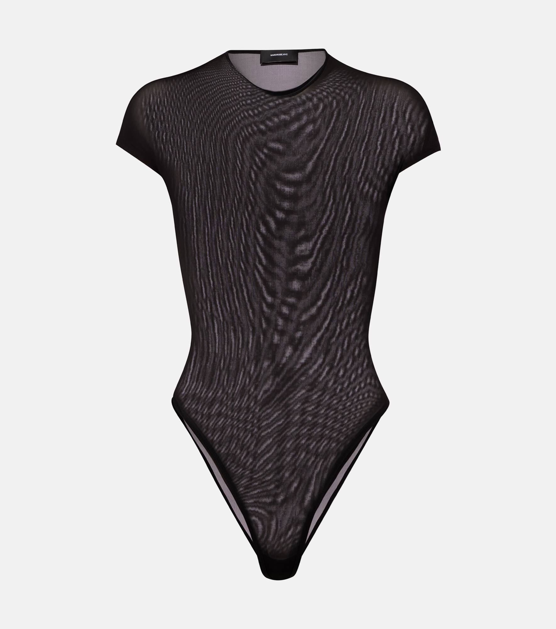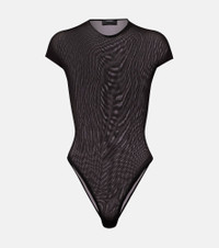 Wardrobe.NYC's elegant everyday essentials are produced in limited quantities with versatility, supreme quality, and modern urban life at their core. This bodysuit is made from sheer technical material and features short sleeves and high-cut leg openings. Product Details - Material: 86% viscose, 14% elastane - Care instructions: machine wash cold - Made in Portugal - Designer color name: Black - Item color: black - Item number: P01059027 Size & Fit - True to size - Sheer - Fitted - Stretchy fabric - High-cut leg - The model seen in the picture is 178cm-5'10" and wearing a size S
