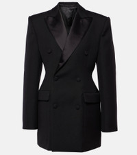Product Details - Material: 100% virgin wool - Care instructions: dry clean - Made in Slovakia - Designer color name: Black - Lining: 70% acetate, 30% cupro - Details: 100% silk - Closure: double-breasted buttoned front - Pockets: flap pockets, internal pocket - Item number: P00878855 Size & Fit - True to size - Oversized shoulders - Shoulder pad inserts - Cinched waist - Non-stretchy fabric - Falls below the hip - The model seen in the picture is 178cm-5'10" and wearing a size XS