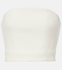 Product Details - Material: 58% wool, 36% polyester, 6% elastane - Care instructions: dry clean - Made in Madagascar - Designer color name: Off White - Closure: concealed zipper - Lining: 100% viscose - Trim: 85% polyamide, 15% elastane - Item number: P00986741 Size & Fit - Fits large to size - we recommend trying one size smaller - Strapless - Internal boned corset for support - Fitted - Non-stretchy fabric - Cropped - The model seen in the picture is 178cm-5'10" and wearing a size XXS