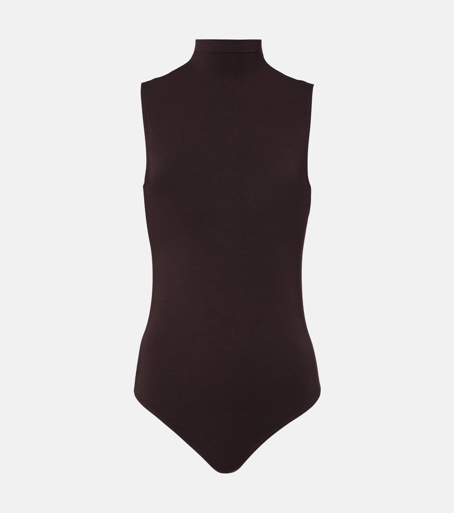 Since its origins as a stockings producer, Wolford has grown to become a leading manufacturer of luxury hosiery and underwear. This sculpting bodysuit is shaped with a high neck. Product Details - Material: 74% modal, 21% polyamide, 5% elastane - Care instructions: machine wash at 30 degrees - Made in Slovenia - Designer color name: Dark Wood - Item color: brown - Collar: turtleneck - Closure: snap-buttoned fastenings - Item number: P01092918 Size & Fit - True to size - Fitted - Stretchy fabric - Medium-cut leg - The model seen in the picture is 178cm-5'10" and wearing a size XS