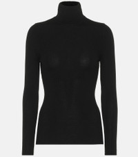Wolford is known for its foundationwear, so you can be sure this black turtleneck sweater will flatter from every angle. With a fitted silhouette that contours the body, it can be layered under blazers or worn alone. You'll love how soft yet breathable it is – it's made from ribbed merino wool in an 18-gauge knit. Product Details - Material: 100% virgin wool - Care instructions: machine wash at 30 degrees - Designer color name: Black - Item number: P00484183 Size & Fit - True to size - Fitted - Lightweight material - Stretchy fabric - Falls to the hip - The model seen in the picture is 178cm-5'10" and wearing a size XS
