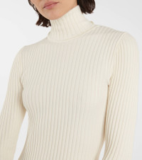 Wolford is known for its shapewear, so you know this ecru-white dress will flatter from every angle. Made from stretch wool and cotton knit in a ribbed finish, it has a turtleneck and long sleeves. Style yours with pumps for work and sneakers when off duty. Product Details - Material: 63% wool, 35% cotton, 2% elastane - Care instructions: machine wash at 30 degrees - Designer color name: Ecrue - Item number: P00484168 Size & Fit - True to size - Fitted - Stretchy fabric - The model seen in the picture is 178cm-5'10" and wearing a size XS