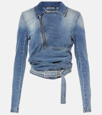 Product Details - Material: 91% cotton, 7% elastomultiester, 2% elastane - Care instructions: machine wash at 30 degrees - Made in Portugal - Designer color name: Faded Blue - Closure: zipped front - Item number: P00967179 Size & Fit - True to size - Low back - Fitted - Adjustable at the waist - Stretchy fabric - Cropped - The model seen in the picture is 178cm-5'10" and wearing a size XS