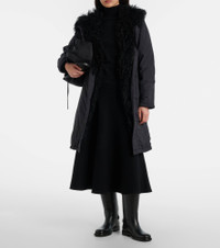 Yves Salomon's exquisite French craftsmanship produces winter wear that blends function and elegance. This down coat is crafted from a technical fabric with soft shearling trims and features a drawstring waist and a buttoned front. Product Details - Material: 100% polyamide - Care instructions: specialist clean - Made in France - Designer color name: Noir - Item color: black - Trim: 100% shearling - Filling: 95% down, 5% elastane - Includes: garment bag - Closure: buttoned front - Pockets: snap-buttoned pockets - Hood - Drawstring waist - Item number: P01096157 Size & Fit - True to size - Loose fit, drawstring waist - Adjustable hem - Non-stretchy fabric - Falls below the hip - The model seen in the picture is 178cm-5'10" and wearing a size FR 36