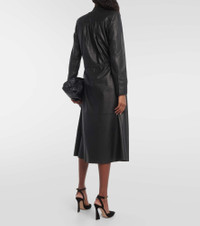 Defined by a smooth leather construction, this dress from Yves Salomon makes for a refreshing addition to your work wardrobe. The design features a banded collar and a drawstring waist which accentuates the midi-length skirt. Product Details - Material: 100% lamb leather - Lining: 100% polyester - Care instructions: specialist clean - Designer color name: Black - Made in France - Item number: P00862848 Size & Fit - True to size - Shoulder pad inserts - Designed for a loose fit - Mid-weight material - The model seen in the picture is 178cm-5'10" and wearing a size FR 36
