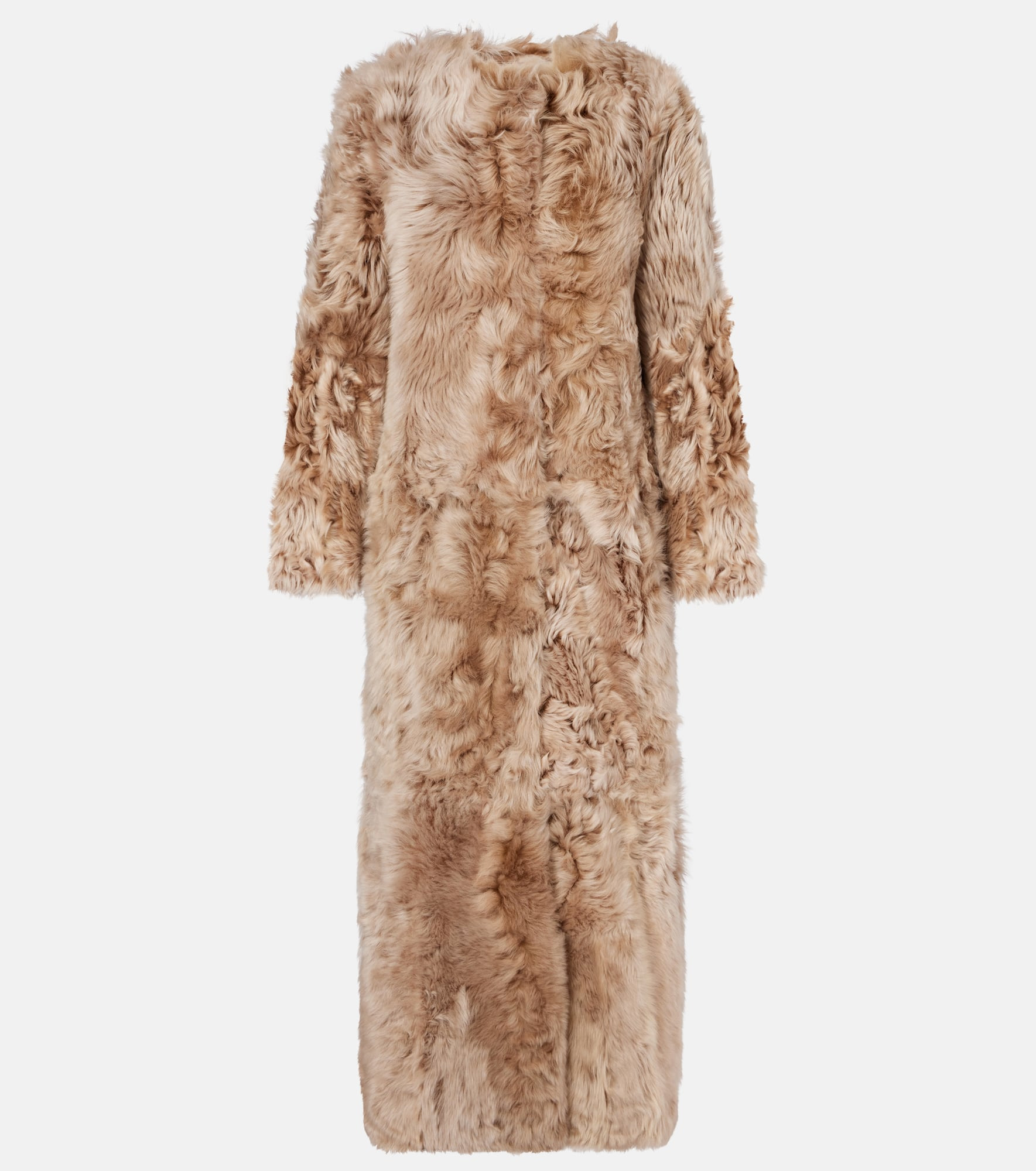 Rooted in a 100-year history, Yves Salomon's exquisite French craftsmanship produces winter wear that blends function and elegance. This coat is made from shearling in a longline and reversible silhouette. Product Details - Material: 100% shearling - Care instructions: specialist clean - Made in France - Designer color name: Chai Latte - Item color: beige - Material II: 100% lamb leather - Closure: snap-buttoned front - Pockets: side slit pockets - Side slits - Item number: P01096169 Size & Fit - Fits large to size - we recommend trying one size smaller - Designed for a loose fit - Non-stretchy fabric - The model seen in the picture is 178cm-5'10" and wearing a size FR 34