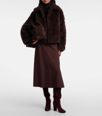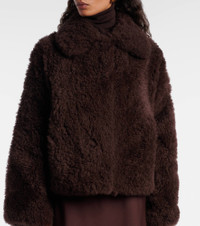 Rooted in a 100-year history, Yves Salomon's exquisite French craftsmanship produces winter wear that blends function and elegance. This jacket is made from plush, warm shearling, features a hook-fastening front, and is fully lined with silk for added comfort. Product Details - Material: 100% shearling - Care instructions: dry clean - Made in France - Designer color name: Mocha - Item color: brown - Trim: 95% wool, 5% polyamide - Lining: 100% silk - Pockets: side slit pockets - Closure: hook-fastening front - Includes: dust bag - Item number: P01096177 Size & Fit - True to size - Designed for a loose fit - Non-stretchy fabric - Falls to the hip - The model seen in the picture is 178cm-5'10" and wearing a size FR 36