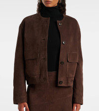 Rooted in a 100-year history, Yves Salomon's exquisite French craftsmanship produces winter wear that blends function and elegance. This jacket is made in France with suede and features a buttoned front and flap pockets. Product Details - Material: 100% lamb leather (suede) - Care instructions: specialist clean - Made in France - Designer color name: Cacao - Item color: brown - Lining: 57% viscose, 43% polybutylene terephthalate - Closure: buttoned front - Pockets: flap pockets - Hem: ribbed, elasticated - Fully lined - Item number: P01096419 Size & Fit - True to size - Dropped shoulders - Straight fit - Elasticated hem - Non-stretchy fabric - Slightly cropped - The model seen in the picture is 178cm-5'10" and wearing a size FR 36
