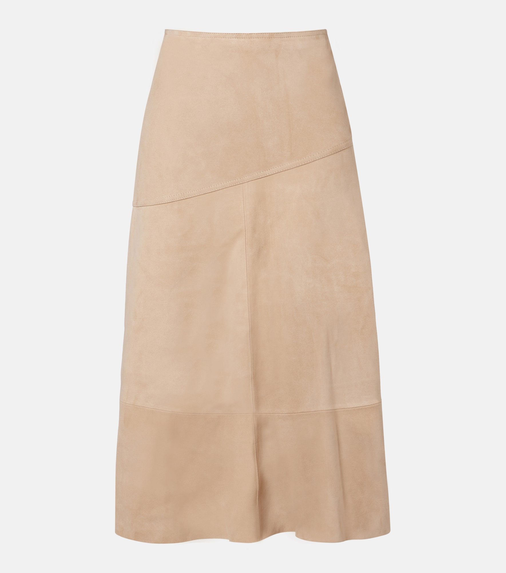 Rooted in a 100-year history, Yves Salomon's exquisite French craftsmanship produces winter wear that blends function and elegance. This midi skirt is made from suede and has an A-line silhouette. Product Details - Material: 100% lamb leather (suede) - Care instructions: specialist clean - Made in France - Designer color name: Sandstorm - Item color: beige - Lining: 57% viscose, 43% polybutylene terephthalate - Closure: zipped back - Partially lined - Includes: dust bag - Item number: P01096423 Size & Fit - True to size - Non-stretchy fabric - The model seen in the picture is 178cm-5'10" and wearing a size FR 36