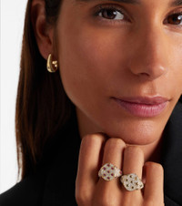 Yvonne Leon is known for her bold and modern designs with a touch of French flair. This ring is crafted from 9kt gold and is dotted throughout with stunning grey diamonds and tsavorites. Product Details - Material: 9kt yellow gold - Made in France - Item color: gold - Stone I: gray diamonds - Stone II: tsavorites - Carat total weight (ctw): 1.61 - Item number: P01091773 Size & Fit - Max. width 15mm-0.6"