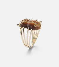 Elegance and eccentricity find perfect harmony in Yvonne Leon's precious collections. The Araignee ring is a playful design sculpted from 9kt gold into a small spider with a rounded tiger eye body, black diamond eyes, and citrine markings. Product Details - Material: 9kt yellow gold - Made in France - Item color: gold, brown - Stone I: tiger eye, 6.1ctw - Stone II: citrines, round-cut, pave setting, 0.13ctw - Stone III: black diamonds, round-cut, prong setting, 0.02ctw - Item number: P01118853 Size & Fit - Max. width 20mm-0.8"