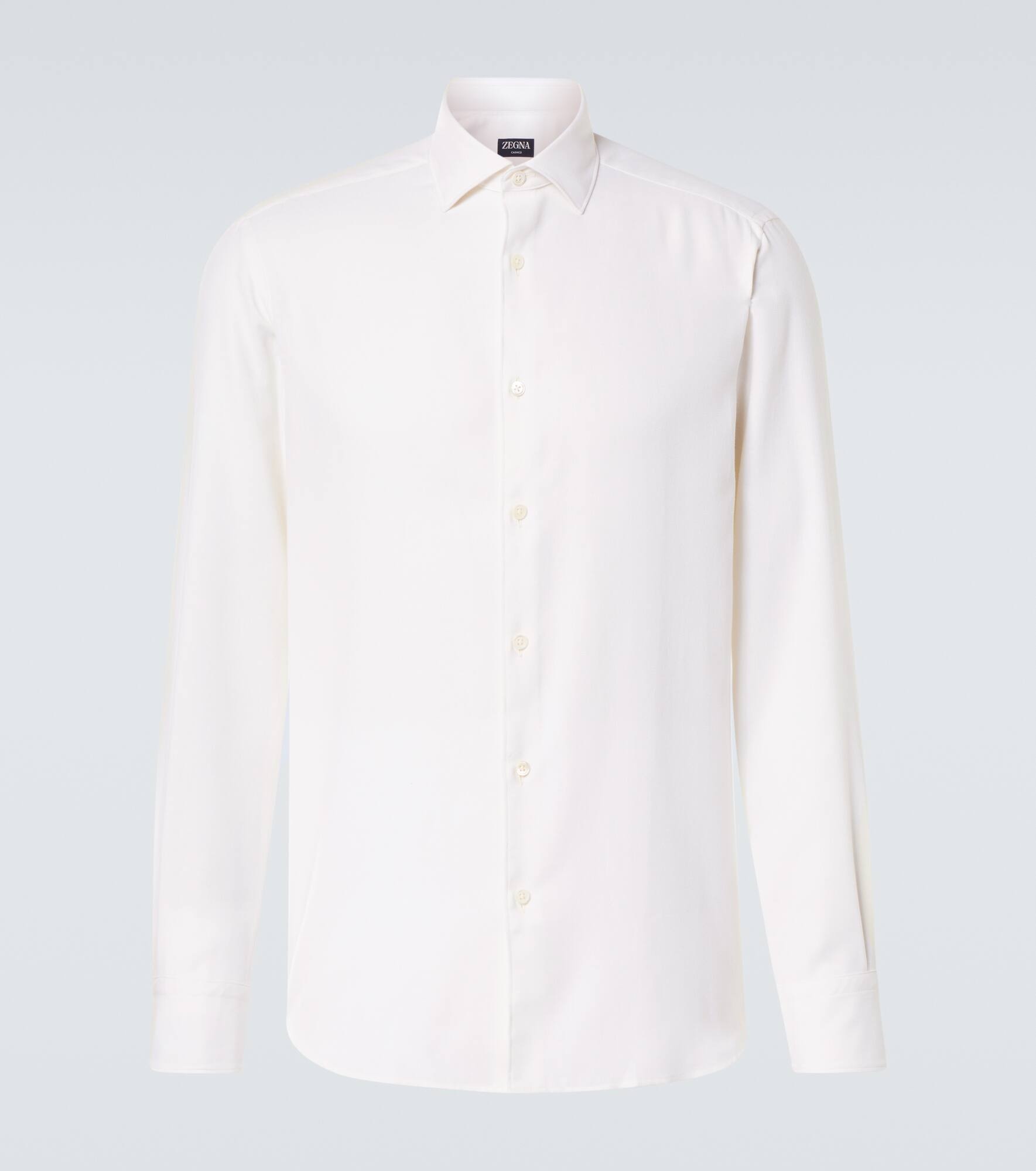 Product Details - Material: 85% cotton, 15% cashmere - Care instructions: hand wash - Made in Italy - Designer color name: White Solid - Contains non-textile parts of animal origin - Closure: buttoned placket - Cuff: two buttons - Collar: classic (Straight point) - Hem: rounded - Item number: P00953213 Size & Fit - True to size - Without pleats in the back - Slim fit - Non-stretchy fabric - Falls to the hip - The model in the picture is 185cm-6'1" and wearing a size M