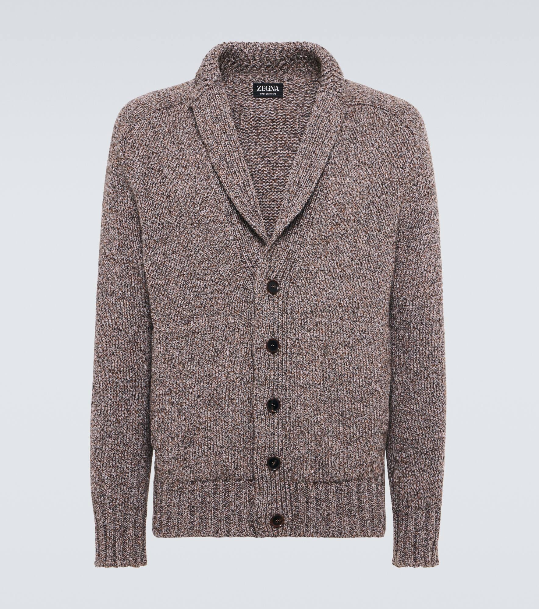 DARK FOLIAGE AND TAUPE OASI CASHMERE CARDIGAN