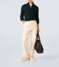 Established with the aim to create the world’s finest fabrics, Zegna is now the go-to brand for luxurious and innovative menswear. Knit from ultra-soft cashmere, this half-zip sweater features a high-neck design with ribbed trims. Product Details - Material: 100% cashmere - Care instructions: hand wash - Made in Italy - Designer color name: Dark Green - Item color: green - Details: 100% calf leather - Contains non-textile parts of animal origin - Closure: partially zipped front - Collar: turtleneck - Cuff: ribbed - Hem: ribbed - Item number: P01057436 Size & Fit - True to size - For a looser fit, we recommend taking one size up - Slim fit - Stretchy fabric - Slightly cropped - Height of model is 187cm-73.5" and wears a size IT 50