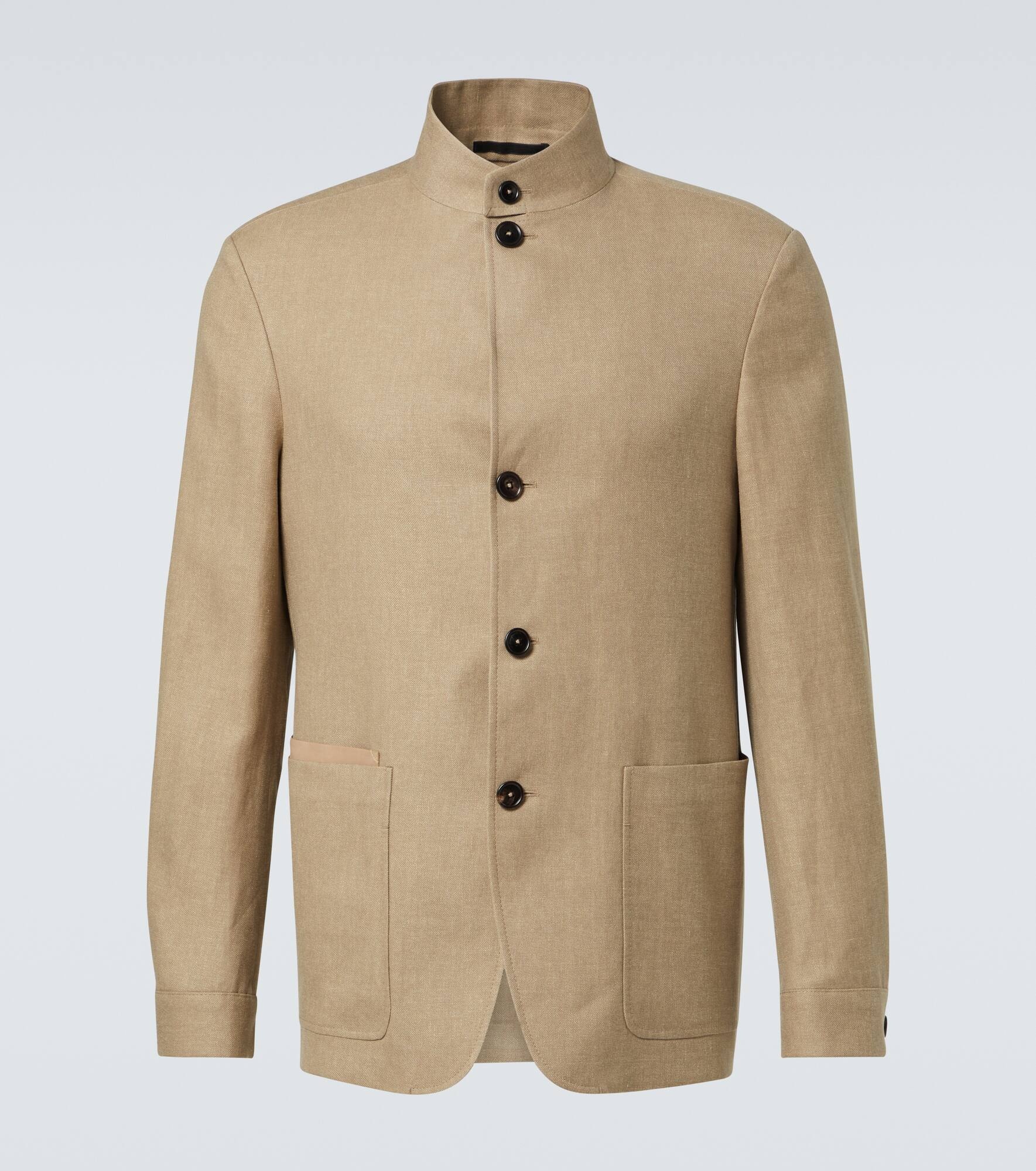 Product Details - Material: 60% linen, 40% wool - Care instructions: dry clean - Made in Italy - Designer color name: Light taupe - Closure: buttoned front - Pockets: patch pockets - Buttoned cuffs - Sleeve lining: 100% cupro - Lining: 53% cotton, 47% cupro - Contains non-textile parts of animal origin - Trim: 100% calf leather - Item number: P01010477 Size & Fit - True to size - Slim fit - Non-stretchy fabric - Falls below the hip - The model in the picture is 185cm-6'1" and wearing a size IT 50