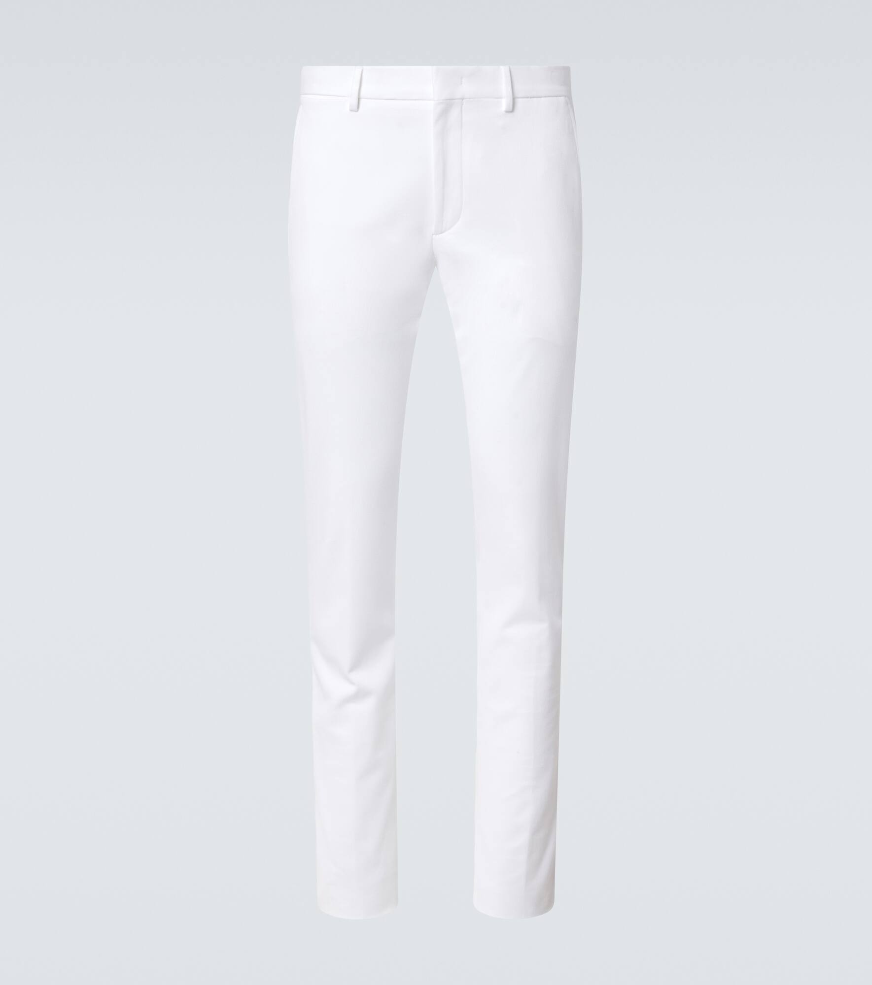 Product Details - Material: 98% cotton, 2% elastane - Care instructions: dry clean - Made in Romania - Designer color name: White - Closure: zip, hook, and button fastening - Pockets: side slit pockets, back pockets - Belt loops - Item number: P00965084 Size & Fit - True to size - Non-stretchy fabric - Slim-leg - Unhemmed for tailoring - The model in the picture is 185cm-6'1" and wearing a size 48